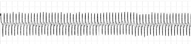 sie kommen in ein Patientenzimmer, der Patient ist von Ihnen weg gedreht und schläft. Der Monitor gibt Alarm und zeigt folgendes Bild: