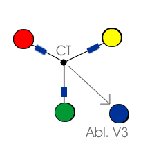 in der Mitte des Körpers, die als CT (central terminal) bezeichnet wird. Die Brustwand- ableitungen V1-V6 untersuchen das Potenzial zwischen dem CT und den