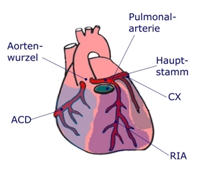 Das Herz wird von zwei wichtigen Arterien versorgt, den Koronargefäßen. Sie zweigen kurz hinter