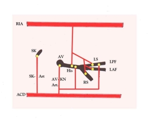 und vordere linke Tawaraschenkel werden von der linken Kranzarterie versorgt.
