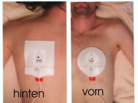Die Klebeelektroden werden an gleicher Stelle wie die Paddles aufgeklebt oder alternativ