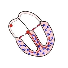 Beim Kammerflimmern kommt es zu einer unkoordinierten Erregung einzelner Zellgruppen im Ventrikel, der Ventrikel wirft dabei