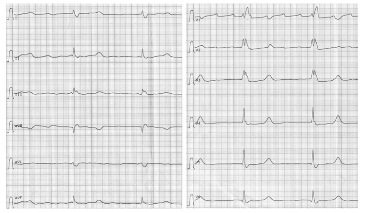 Kammerfrequenz RR-Abstand beträgt 12 gr. Kästchen => 50 / min