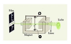 abgelenkt wurde. Der Schatten der Saite wurde auf eine lichtempfindliche Platte projeziert und