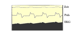 waren nur Kammerausschläge sichtbar. Als Ableitung wurden zwei Elektroden auf Brust und