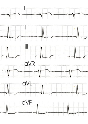 Zudem ist im Vergleich zum 12-Kanal-EKG ist Ableitung I deutlich kleiner. Die Bestimmung des Lagetyps aus dem Monitor-EKG ergibt einen Mitteltyp, da Abl. II die höchste ist.