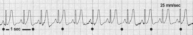 In diesem Streifen ist die T- Welle auffällig. Die T-Welle erhöht sich bei Hyperkaliämie. Kann diese