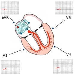 Zellen beteiligt, im Oberflächen-EKG ist daher nichts sichtbar, es erscheint eine Isoelektrische