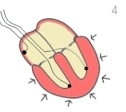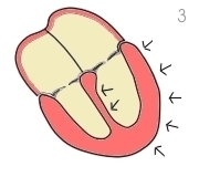 3) Die Erregungswelle wandert dann vom rechten Ventrikel zum linken Ventrikel, der dann später schlägt und das Blut in die Aorta pumpt.