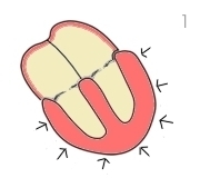 Das Blut presst dabei von beiden Seiten gegen das Septum, das dadurch kaum zur Seite weicht. Das Blut wird vom rechten Herz in die