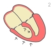 den rechten Ventrikel, der das Blut in die Lungenarterie pumpt. Das Septum hat von der linken Herzkammer keinen Gegendruck und weicht nach links aus.
