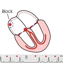 Beim Sinu-Atrialen Block schlägt zwar der Sinusknoten, der Vorhof wird jedoch nicht erreicht.