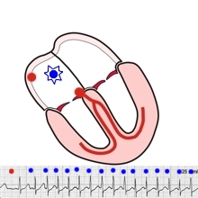 Die AV-Reentrytachykardie ist eine supraventrikuläre Tachykardie. Im AV-Knoten gibt es eine langsame Leitungsbahn (slow path) und eine
