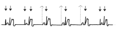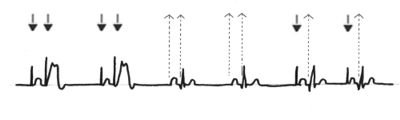 Werden eigene Aktionen ausreichender Frequenz detektiert, setzt der Schrittmacher aus. |